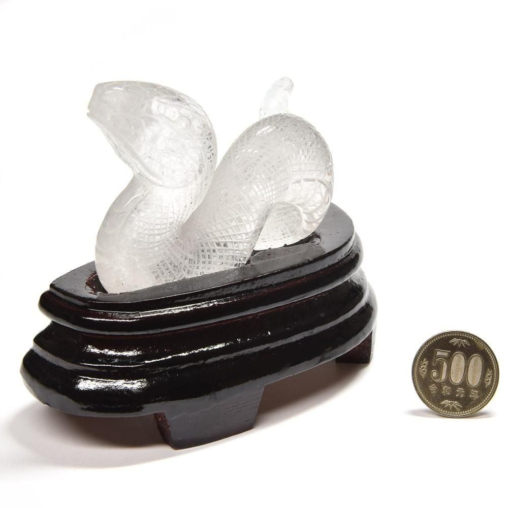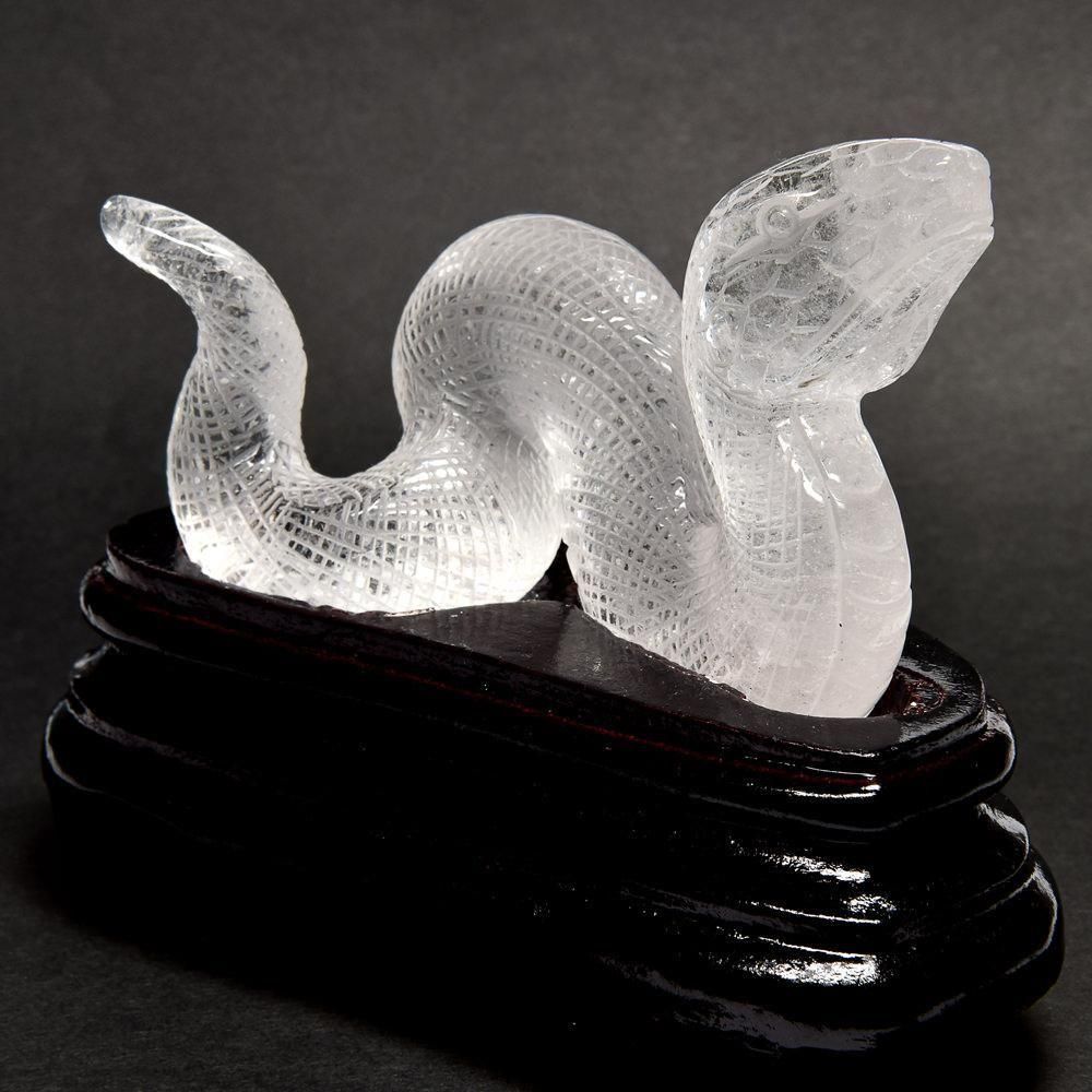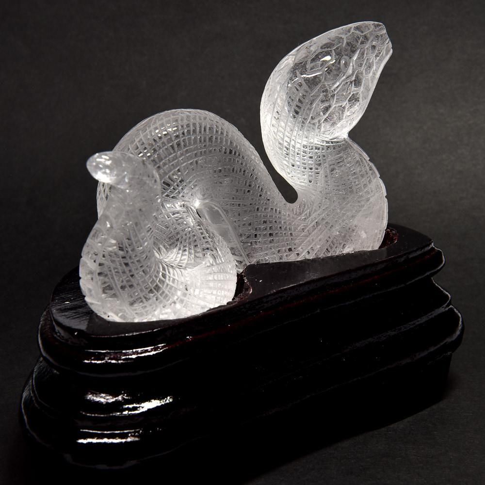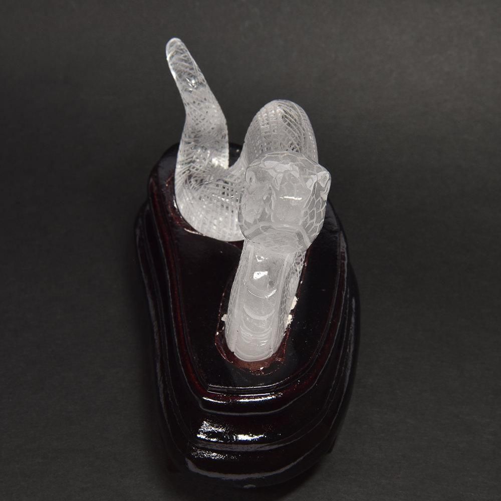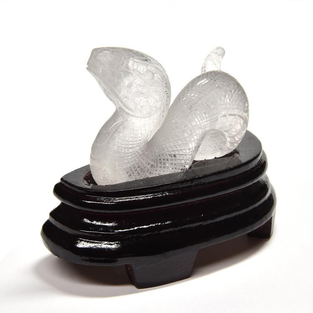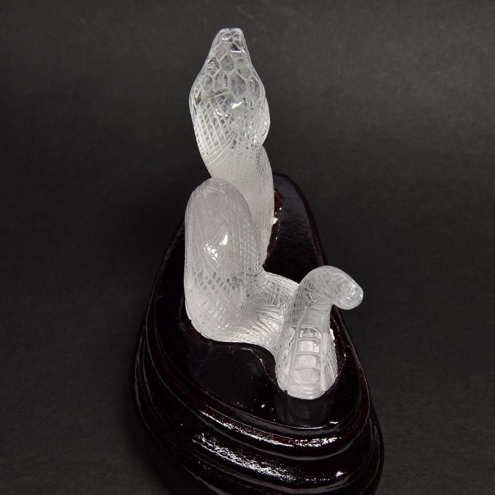 天然水晶 蛇彫刻置物(専用台座付き)|迫力と神秘を備えた守りの造形美