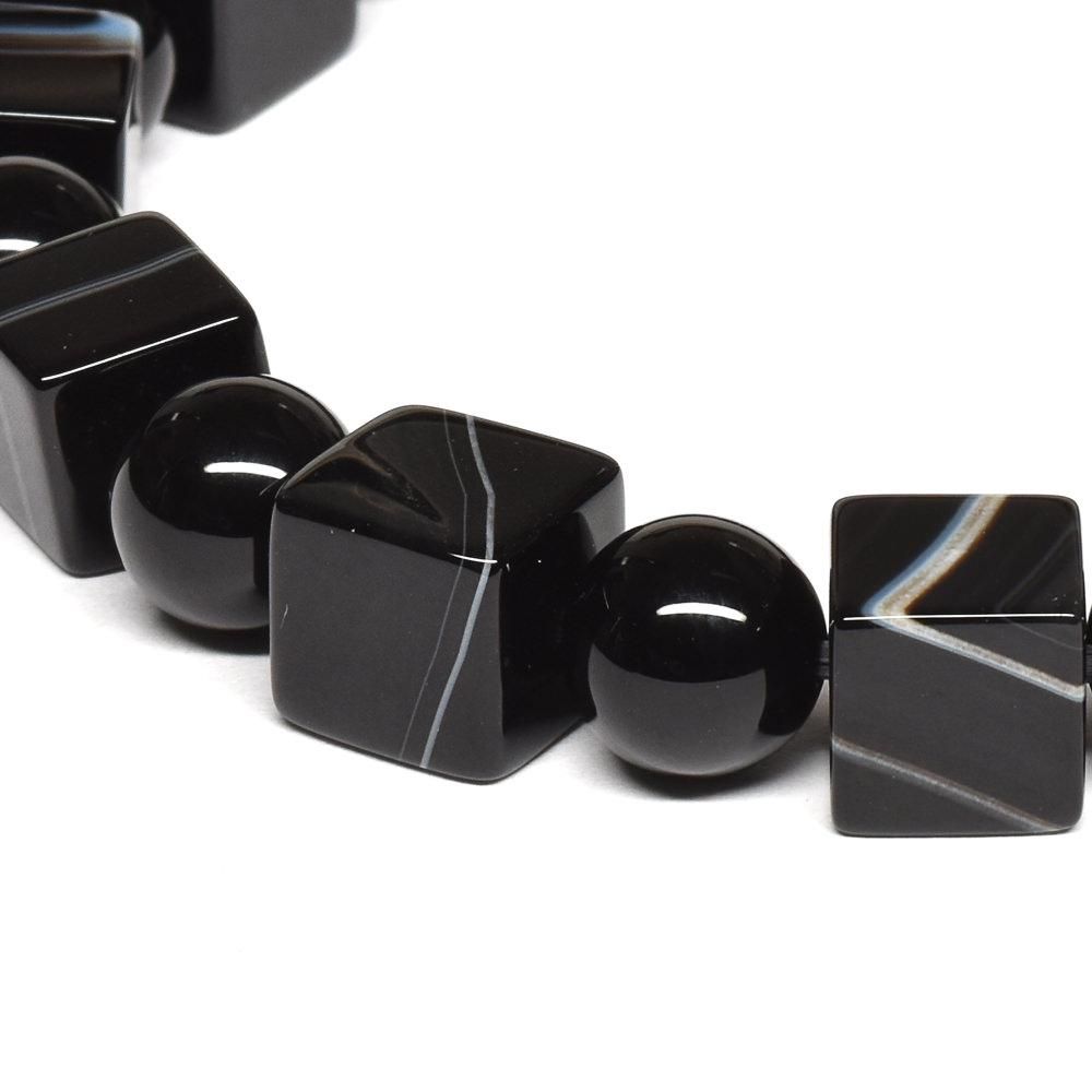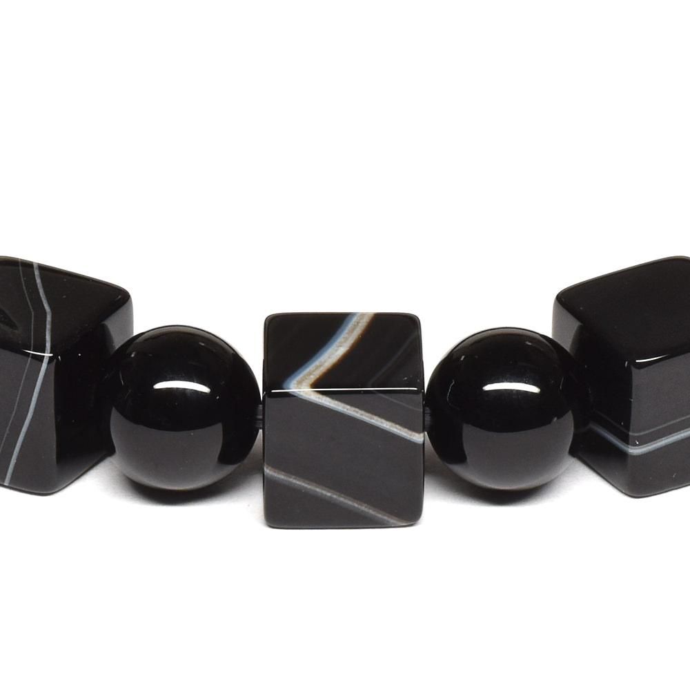 ストライプオニキス キューブ+ラウンドビーズ ブレスレット 8+8mm #RE494