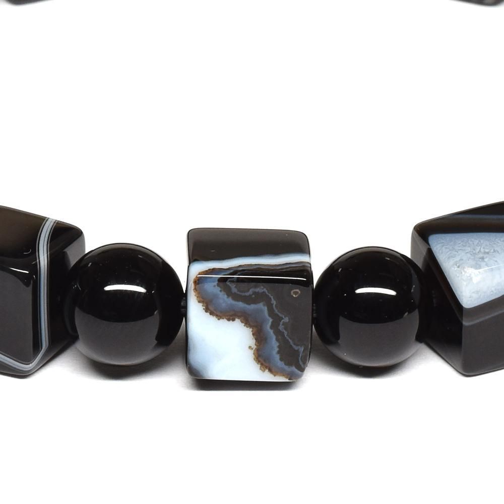 ストライプオニキス キューブ+ラウンドビーズ ブレスレット 8+8mm #RE495