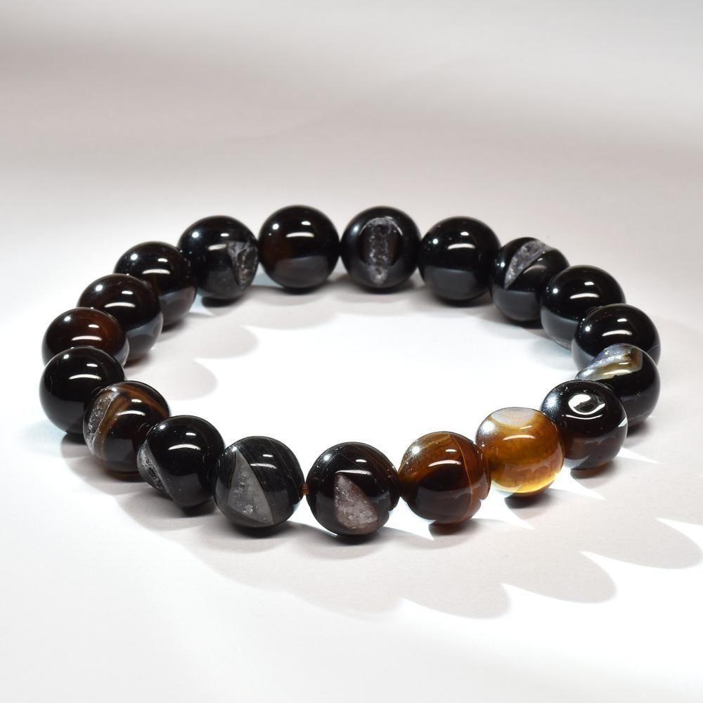 笑口アゲート(ブラックアゲート)ブレスレット 10-10.5mm #RH038