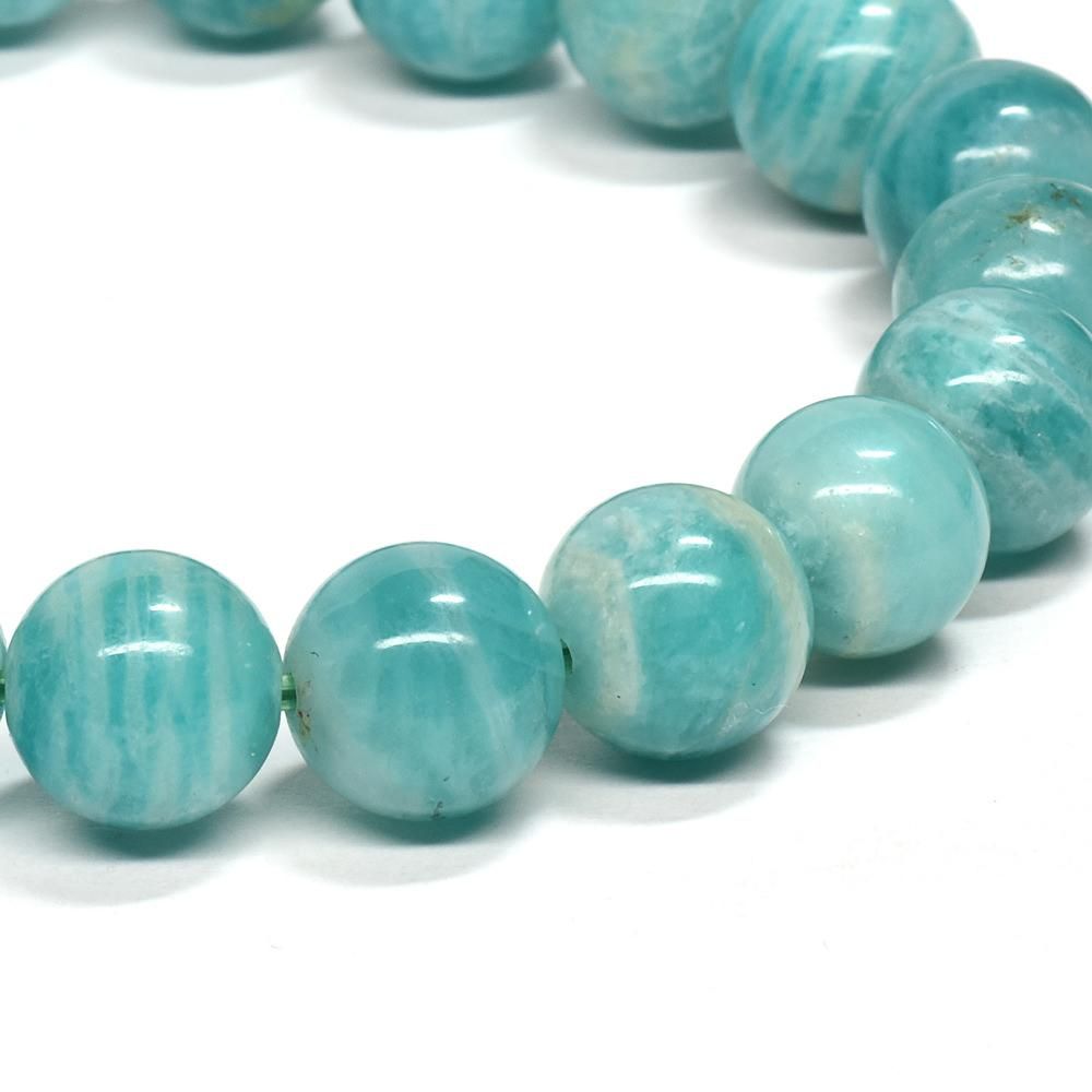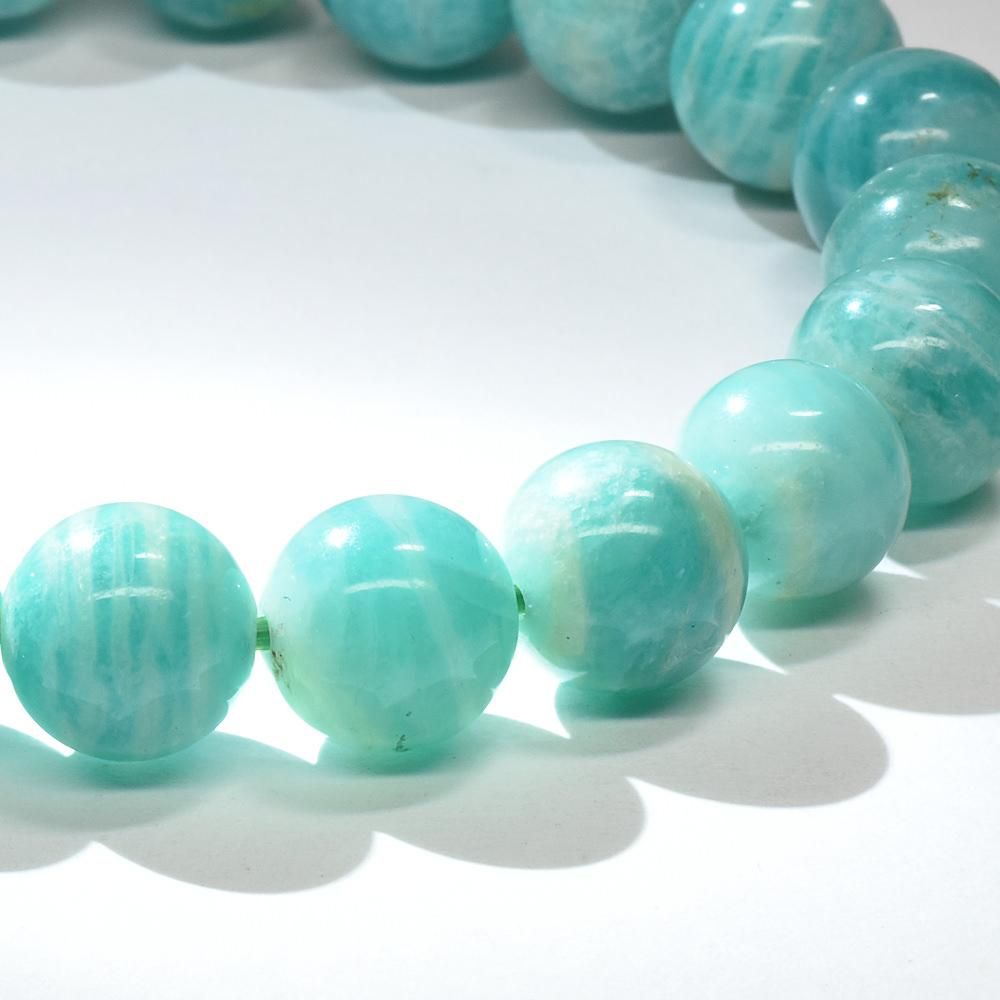 鮮やかなブルーグリーンと白の縞模様が印象的な、ロシア産アマゾナイトのブレスレットです。