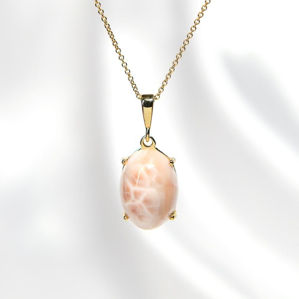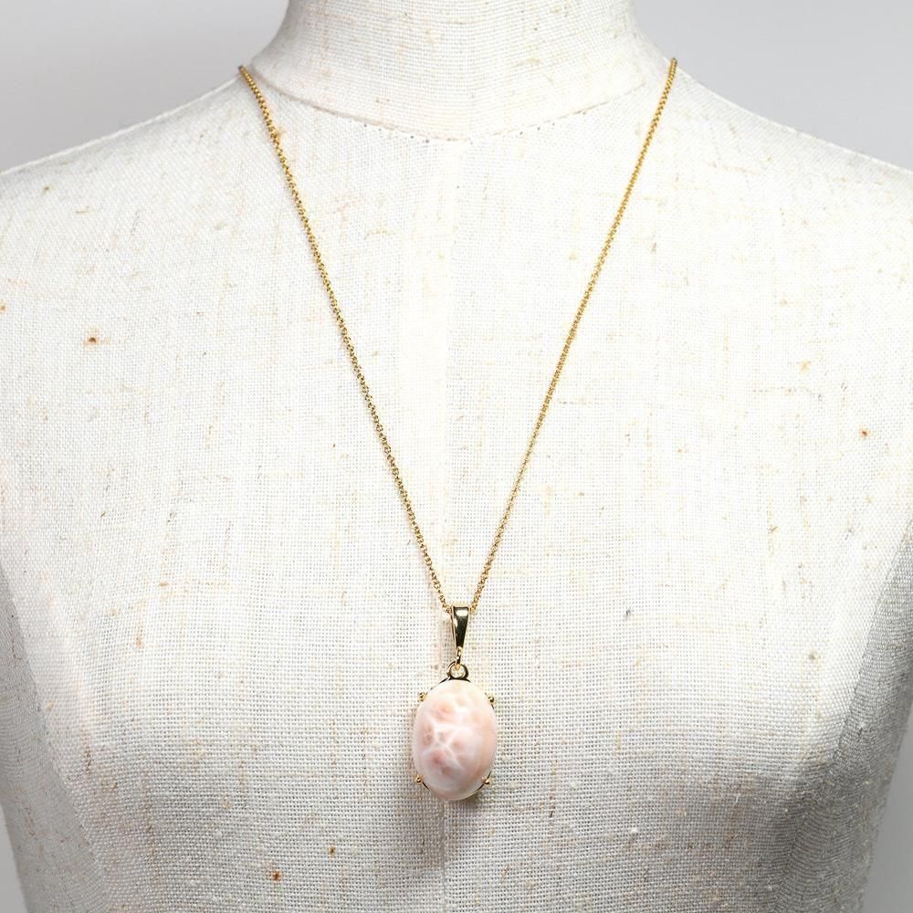 柔らかなオレンジピンク色と特徴的な波模様が美しいトムソナイトのペンダントトップです。