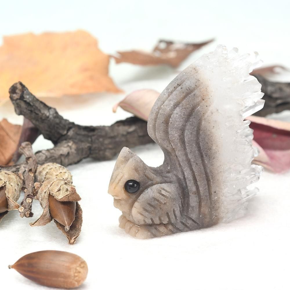 水晶クラスター『リス』彫刻置物 41.3x40.6x13.1mm #RJ165