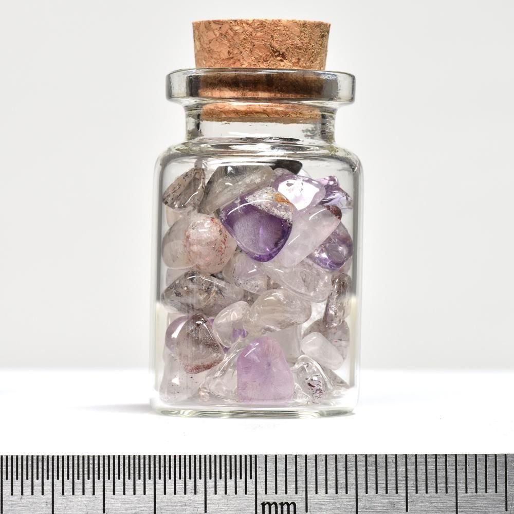 人気のパワーストーン「スーパーセブン」のさざれ石をかわいい小瓶に収めました。飾っても良し、お守りとして持ち歩いても良しのアイテムです。
