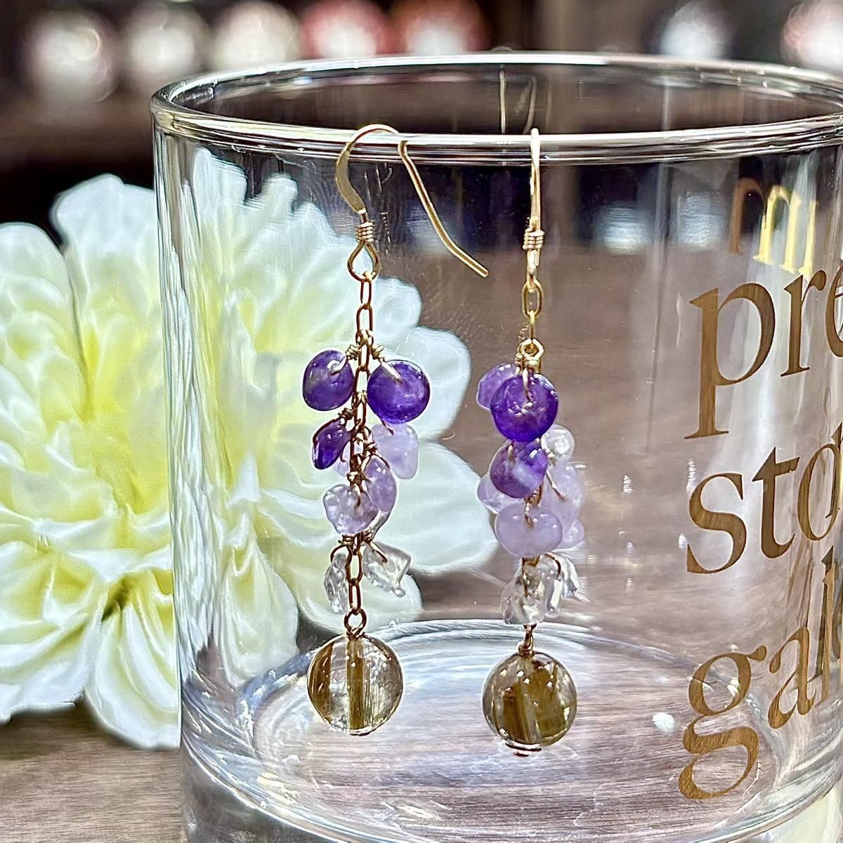 天然石ピアス(ゴールドルチルクォーツ/アメジスト)#RK071[11/25発売]