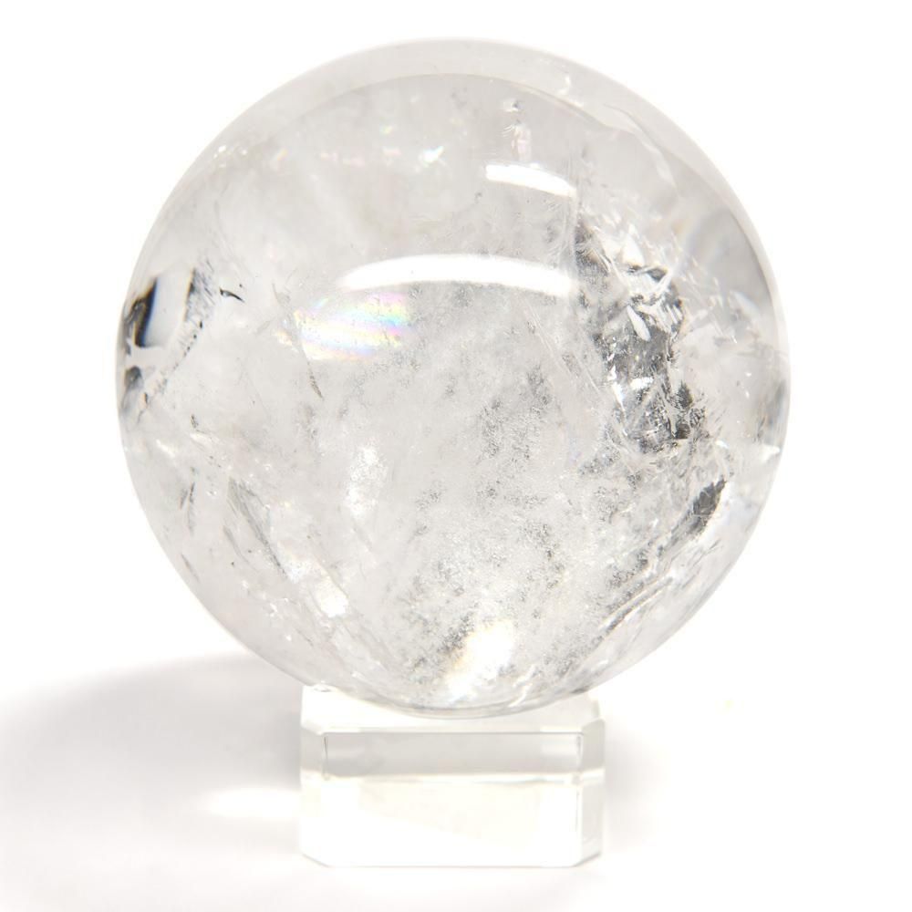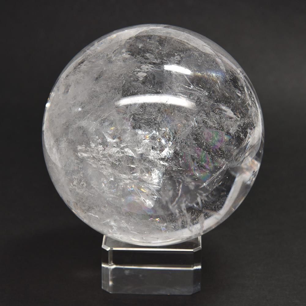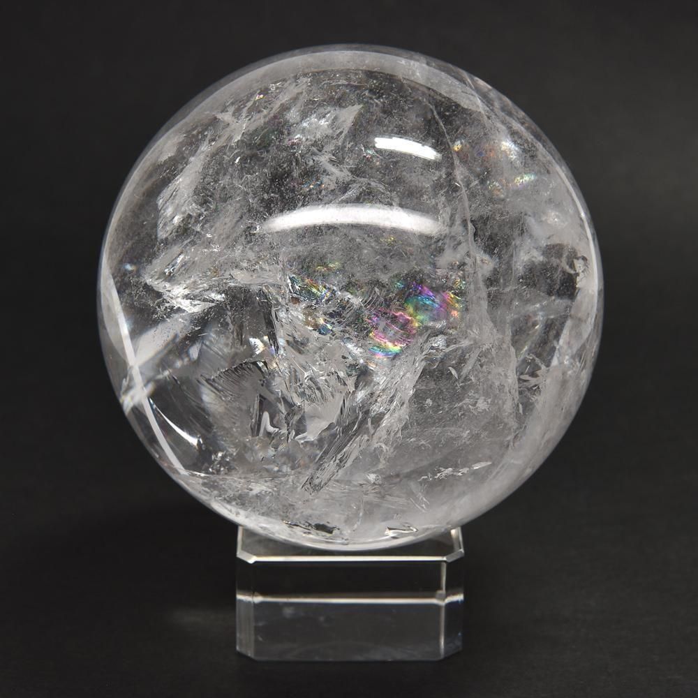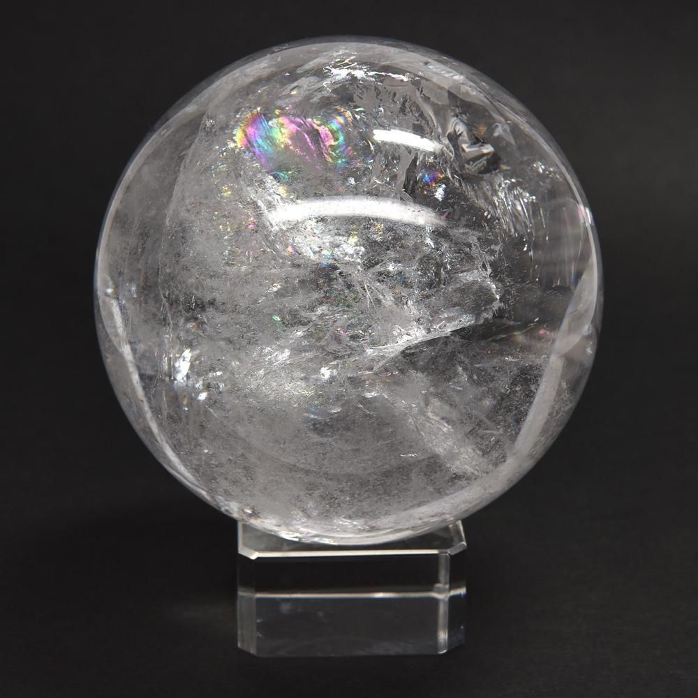 アイリスクォーツの丸玉は、内部のクラックに差し込む光が美しいレインボーとして輝きを放つ天然石です。その魅力的な見た目は、まるで天からの贈り物のよう。大きな丸玉ならではの輝きで、より一層美しいレインボーを楽しむことができます。