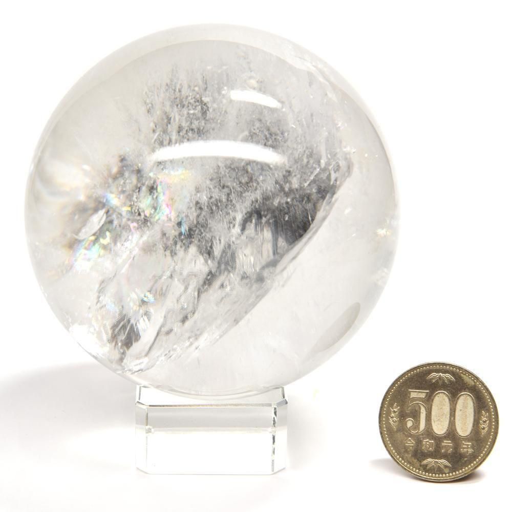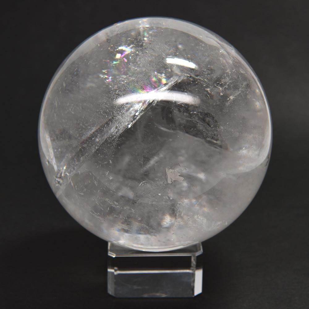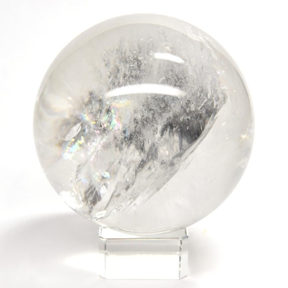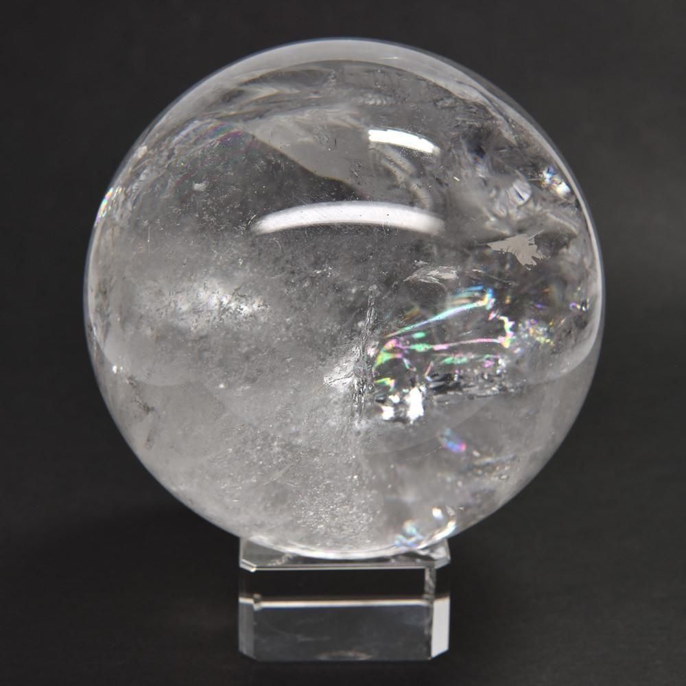 アイリスクォーツの丸玉は、内部のクラックに差し込む光が美しいレインボーとして輝きを放つ天然石です。その魅力的な見た目は、まるで天からの贈り物のよう。大きな丸玉ならではの輝きで、より一層美しいレインボーを楽しむことができます。