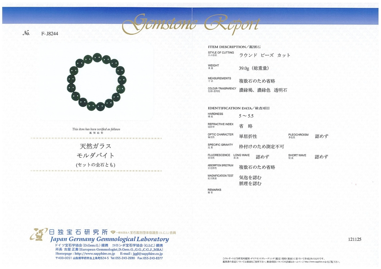 [新春SALE] [鑑別付]モルダバイト ブレスレット 12-12.5mm #UC317[1/6-13限定販売]