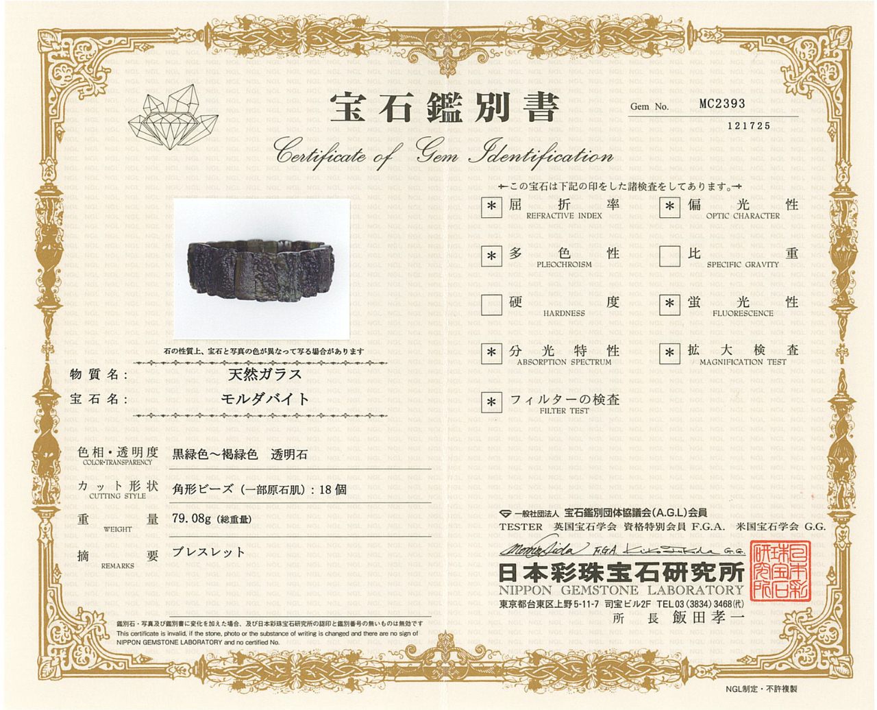 この商品には、こちらの鑑別書をお付けします。