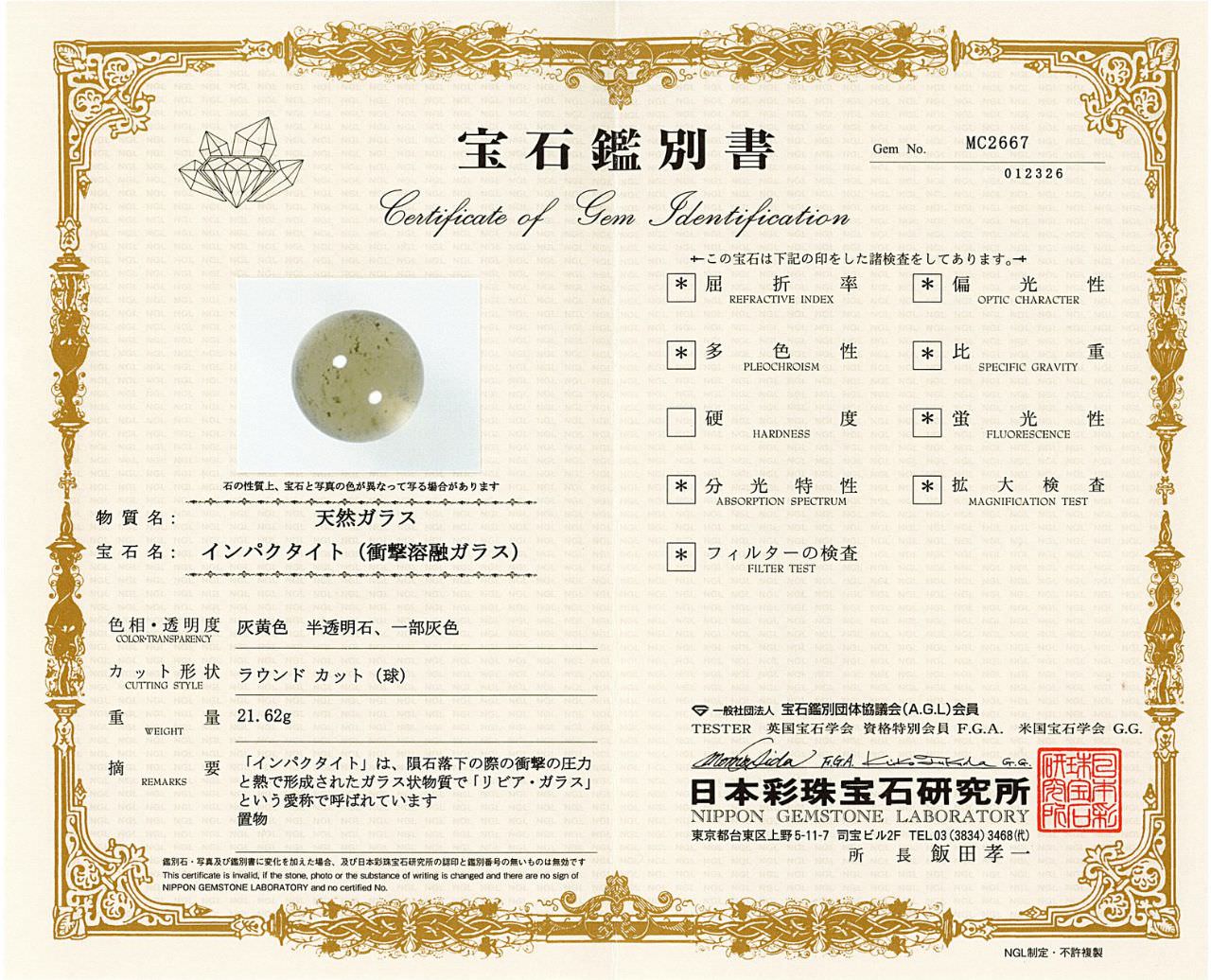 ★特価★[鑑別付]リビアングラス 丸玉 26.6mm #SA191[リビアン丸玉フェア]