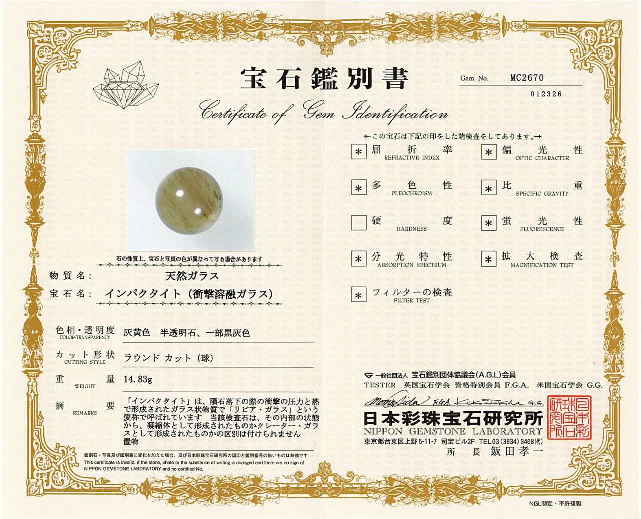 ★特価★[鑑別付]リビアングラス 丸玉 23.4mm #SA188[リビアン丸玉フェア]
